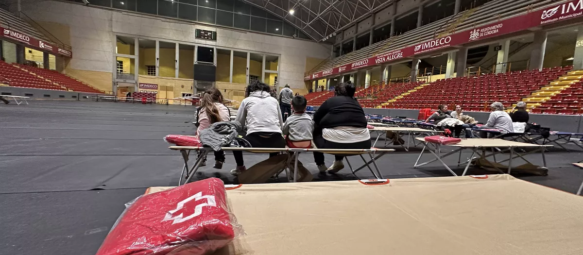 El Palacio de Deportes Vistalegre de Córdoba se ha habilitado para atender a las personas desalojadas por la crecida del río.