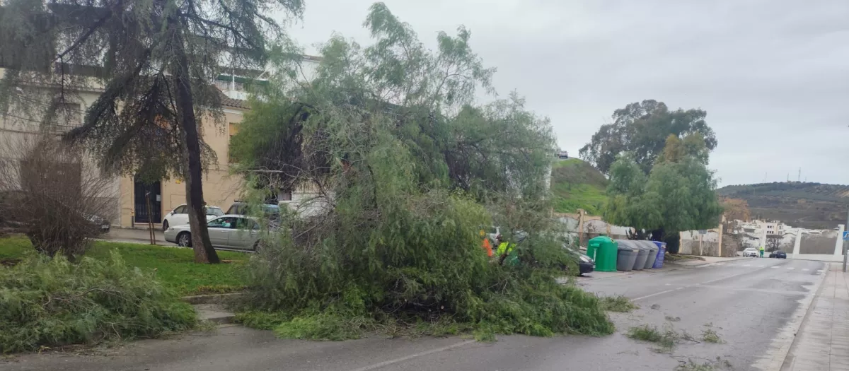 El dispositivo municipal ha intervenido en numerosos puntos del término municipal debido a la caída de árboles, ramas y otros elementos urbanos. Entre las actuaciones realizadas se encuentran la retirada de una palmera en el entorno de la Casa Ciudadana; un pino en Espuny; un olmo en la Plaza de la Marina; un pino en el Polideportivo; una rama que interrumpía el tráfico en la Cuesta del Molino; un árbol en el entorno del Colegio Pemán; una rama en el Tropezón; una falsa pimienta en el Colegio Ribera Baja; un pino en Cordobilla que obligó al corte de un carril y que ya se ha restablecido a la circulación; varios ejemplares en el Pinar de San Rafael; una melia en El Palomar; un naranjo en la Avenida de la Estación; un álamo en el recinto ferial; una jacaranda en Calle Industria; un cedro en Disgenil; y una gran valla publicitaria afectada en la avenida de La Rambla, junto a la glorieta del Centro Deportivo Weekend.