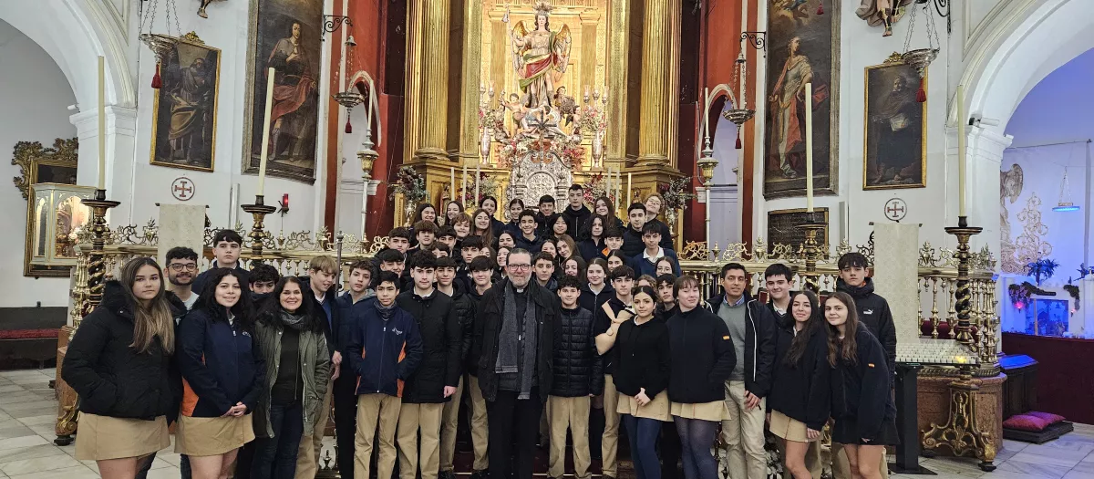 Durante la visita, el rector de la iglesia del Juramento, Fernando Cruz Conde, ejerció de guía y explicó a los estudiantes el episodio de las apariciones del Arcángel al padre Andrés de las Roelas, un acontecimiento clave para entender la devoción popular y la identidad espiritual de Córdoba desde el siglo XVI. El itinerario incluyó también las áreas expositivas dedicadas a los Santos Mártires y el espacio museístico sobre la Sábana Santa, con contenidos históricos, artísticos y científicos.