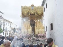 El paso en el que procesiona a día de hoy, es un trono de formas sencillas para ser portado con portadores y culmina con cuatro candelabros arbóreos, diseño de Javier Aguilar y ejecutados en los talleres de Orfebres Gradit de Lucena. Los cuatro candelabros si permanecen en el futuro canasto.