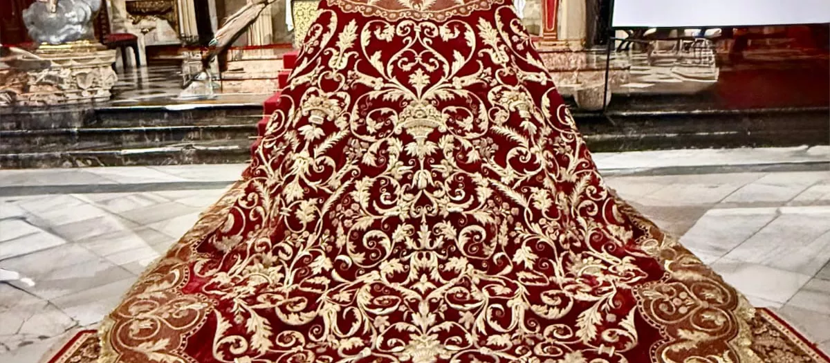 La restauración del manto de la Reina de los Mártires recupera una obra maestra del bordado de Elena Caro