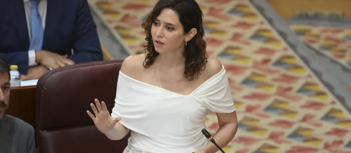 La presidenta de la Comunidad de Madrid, Isabel Díaz Ayuso, ha preguntado este jueves al portavoz del PSOE en la Asamblea, Juan Lobato, si «¿van a permitir un referéndum vinculante, que es lo que viene después, para Puigdemont?».