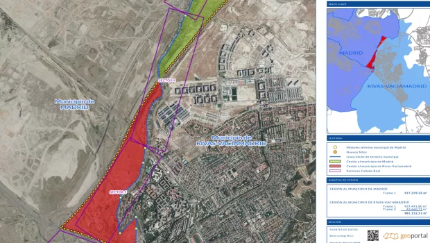 Por su parte, el Consistorio de Rivas Vaciamadrid transfiere a Madrid un total de 517.239 m², todos ellos situados al norte de la A-3.