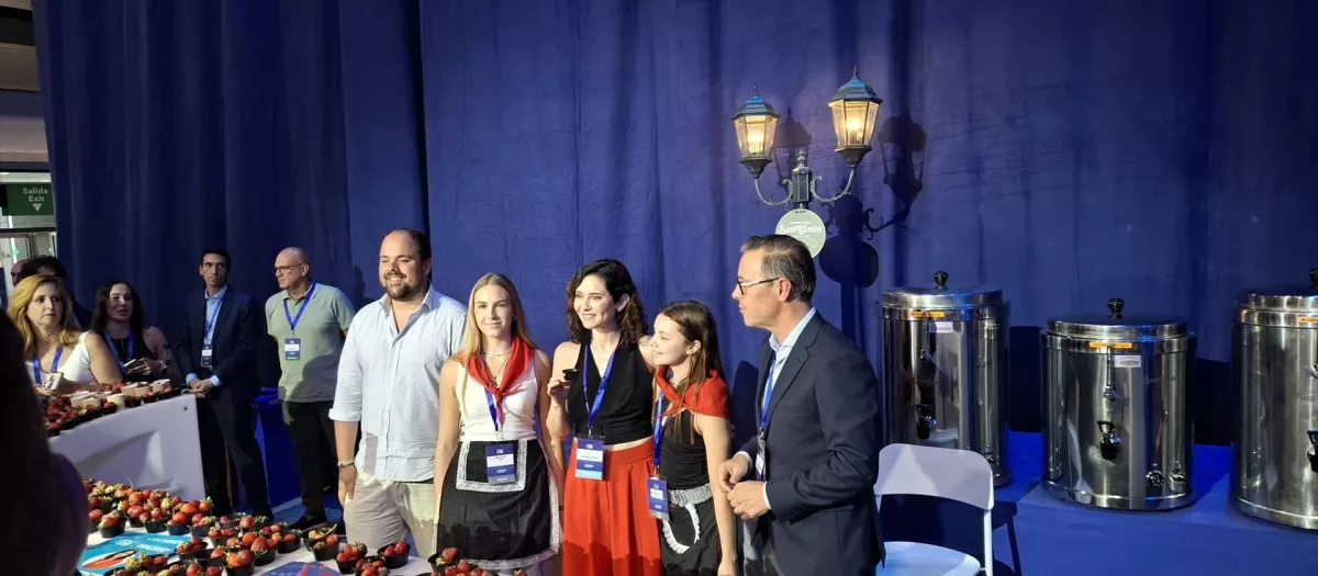Ayuso recibe a los militantes del PP con fresas: «¿La fruta? Está buenísima, me encanta»