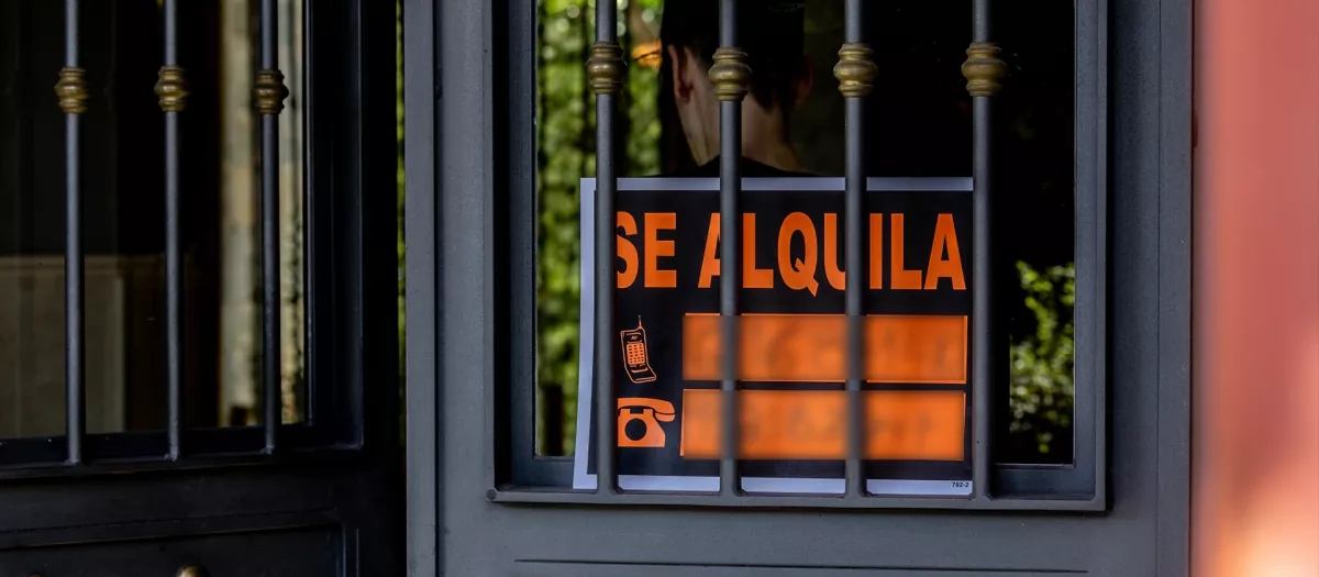 Un cartel que anuncia que se alquila una vivienda