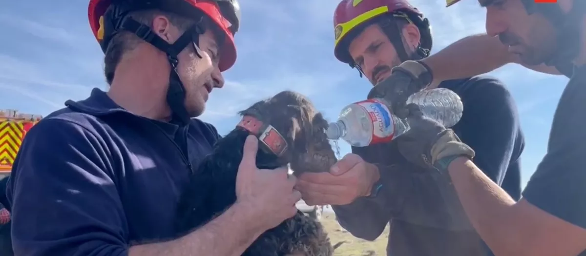 Fue un rescate muy emotivo y en las imágenes que ha difundido el servicio de Emergencias 112 de la Comunidad de Madrid se puede ver la felicidad en la cara de los agentes de Bomberos, que se han encargado también de hidratar a la pequeña Mamba después de casi 24 horas atrapada.