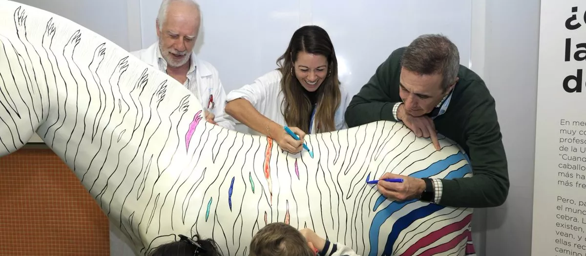 El Hospital Universitario La Paz ha inaugurado este miércoles una cebra de tamaño natural, reconocida como símbolo internacional de las Enfermedades Raras. Está ubicada entre el vestíbulo de Consultas Externas del Hospital Infantil y la sala de espera de Urgencias Pediátricas, dos espacios de alto tránsito.