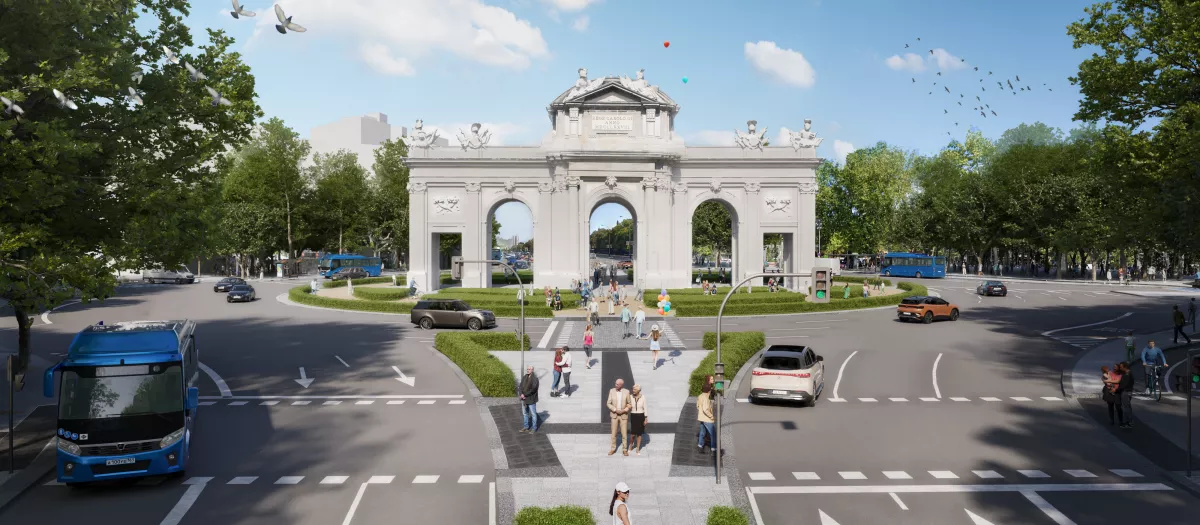 La remodelación supondrá la integración visual y funcional de la Puerta de Alcalá, reduciendo su carácter de monumento aislado en una glorieta y acercándolo a la ciudadanía.