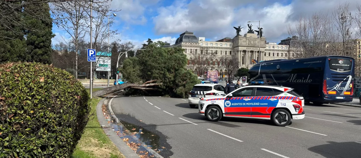 El fuerte viento en Madrid derriba un árbol de grandes dimensiones en la glorieta de la estación de Atocha