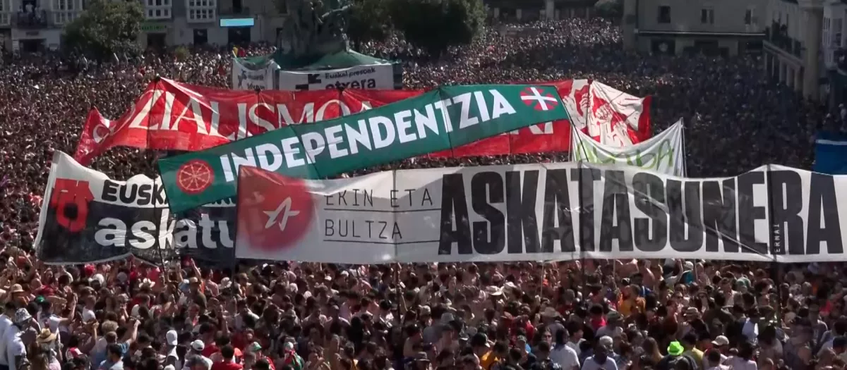 La tradicional bajada de Celedón, símbolo de arranque de las fiestas de Vitoria, volvió a llenar la Plaza de la Virgen Blanca de miles de personas en un ambiente festivo y caluroso. Sin embargo, la jornada se vio empañada por la inclusión, una vez más, de un mensaje político que poco o nada tiene que ver con el espíritu de celebración.