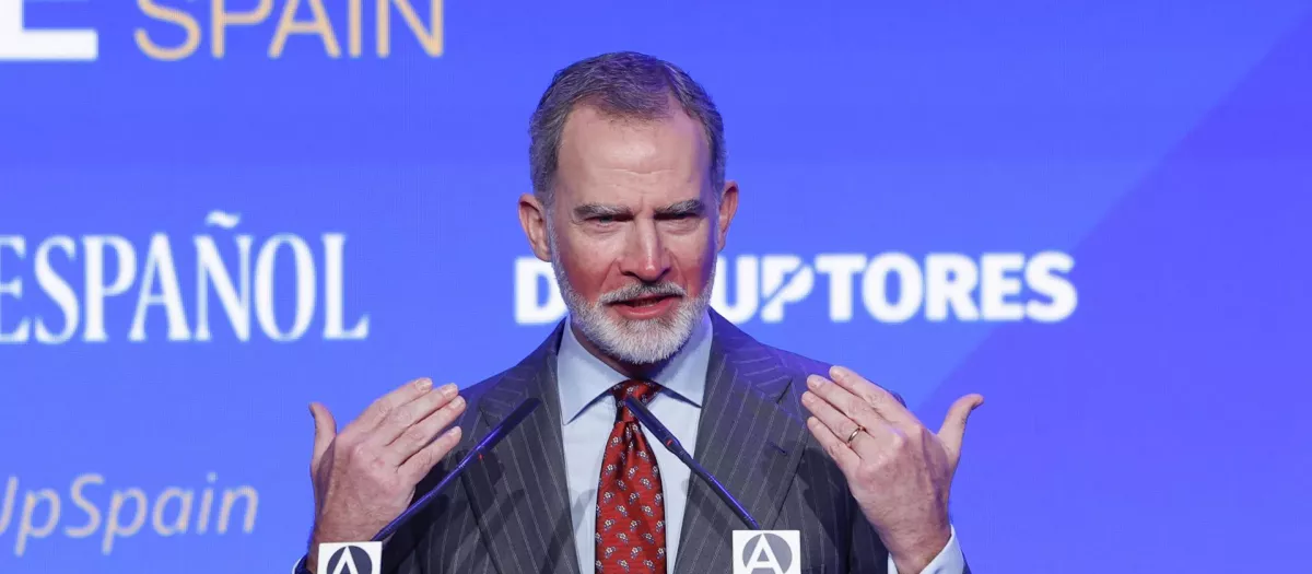 Don Felipe, este lunes, con el rostro quemado, en un acto celebrado en Madrid