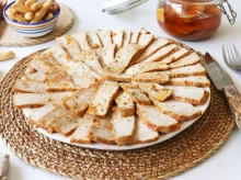 En el primer vuelco, el caldo profundo y lleno de sabor, que es resultado de horas de cocción. En el segundo, los garbanzos, el repollo, la patata y la zanahoria, junto al chorizo dulce, la morcilla, el morcillo, la gallina y el tocino. Y un elemento clave que marca la diferencia: los huesos de jamón, que aportan carácter y personalidad al conjunto. Aquí el jamón no es un acompañante, sino que forma parte de la receta.
