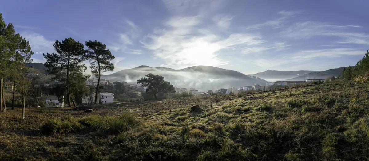 Paisaje de una mañana fría en en Caminomorisco, pueblo de Las Hurdes.