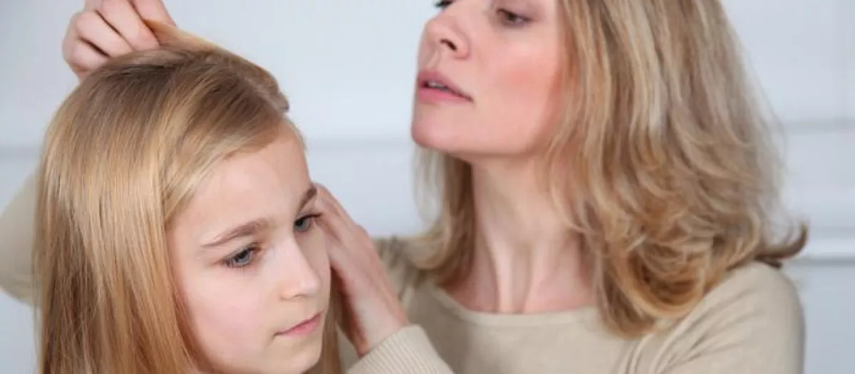 Una madre revisando la cabeza de su hija en busca de piojos