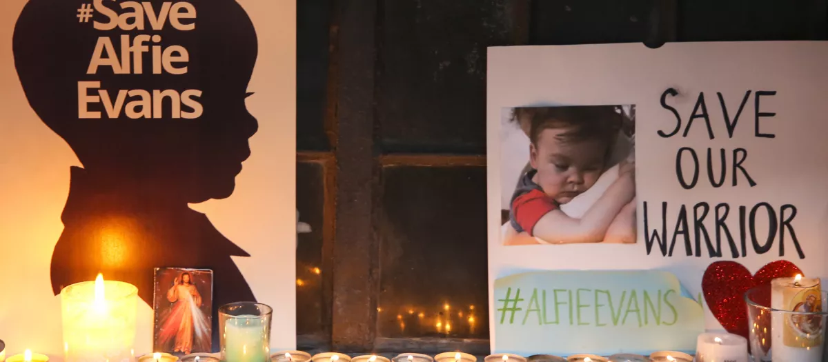 El bebé británico Alfie Evans, que se encontraba en estado terminal, murió en abril de 2018 en Reino Unido tras la larga batalla judicial que emprendieron sus padres para lograr prolongar su tratamiento. Contra la opinión de los médicos, Kate James y Thomas Evans elevaron el caso de su hijo a las más altas esferas, llegando a movilizar al mismo Vaticano. El joven estaba ingresado en el hospital infantil Alder Hey de Liverpool (noroeste de Inglaterra).