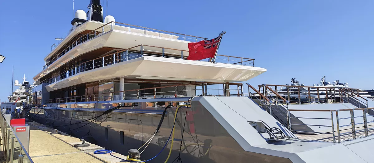 La embarcación, valorada en más de 200 millones de euros, se encuentra actualmente en el muelle de Costa