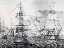 Los 13 de la Isla del Gallo. Óleo de Juan B. Lepiani, que representa a Francisco Pizarro en la isla del Gallo, invitando a sus soldados a cruzar la línea trazada en el suelo