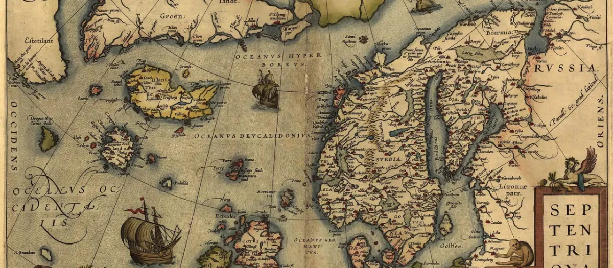 Mapa de 1570 del noroeste de Europa y el océano Atlántico Norte. Del atlas de Abraham Ortelius, «Theatrvm orbis terrarvm»
