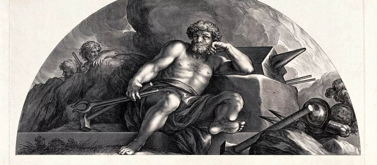 Hefesto. Grabado de C. Bloemaert basado en una obra de Pietro