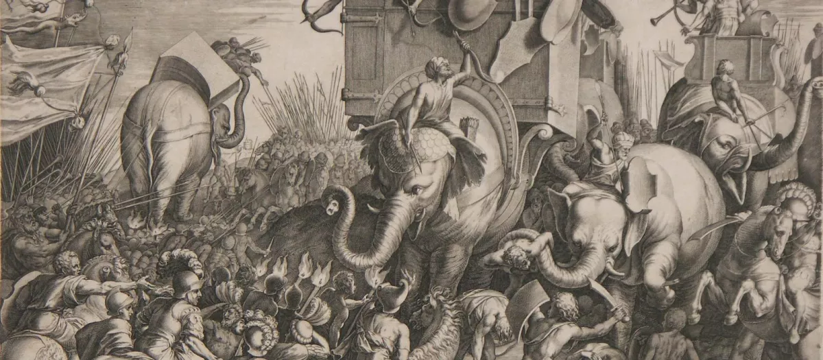 Diversos autores, como el historiador griego Polibio y el romano Tito Livio, recogen, aunque en un tono casi mítico, el episodio de Aníbal cruzando los Alpes con 37 elefantes para atacar Roma por sorpresa.
