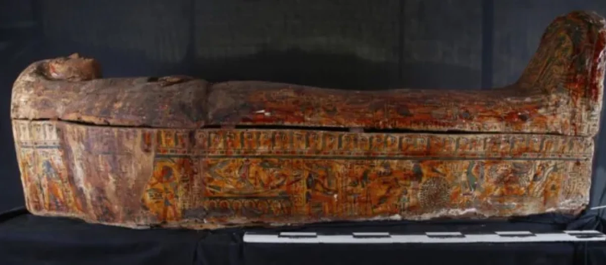 Los trabajos de excavación revelaron una cámara rectangular excavada en la roca utilizada como depósito funerario. En su interior, los arqueólogos encontraron 22 ataúdes de madera pintada, dispuestos en varias capas, lo que refleja una disposición cuidadosamente organizada. Los antiguos egipcios apilaban los ataúdes en diez filas horizontales, separando las tapas de las bases para maximizar la capacidad de la cámara, según explica el comunicado oficial.