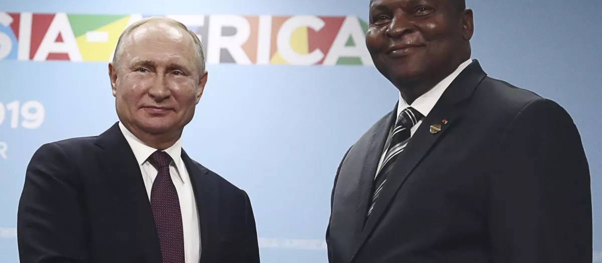 Vladimir Putin junto a Faustin-Archange Touadéra, el presidente de la República Centroafricana (RCA)