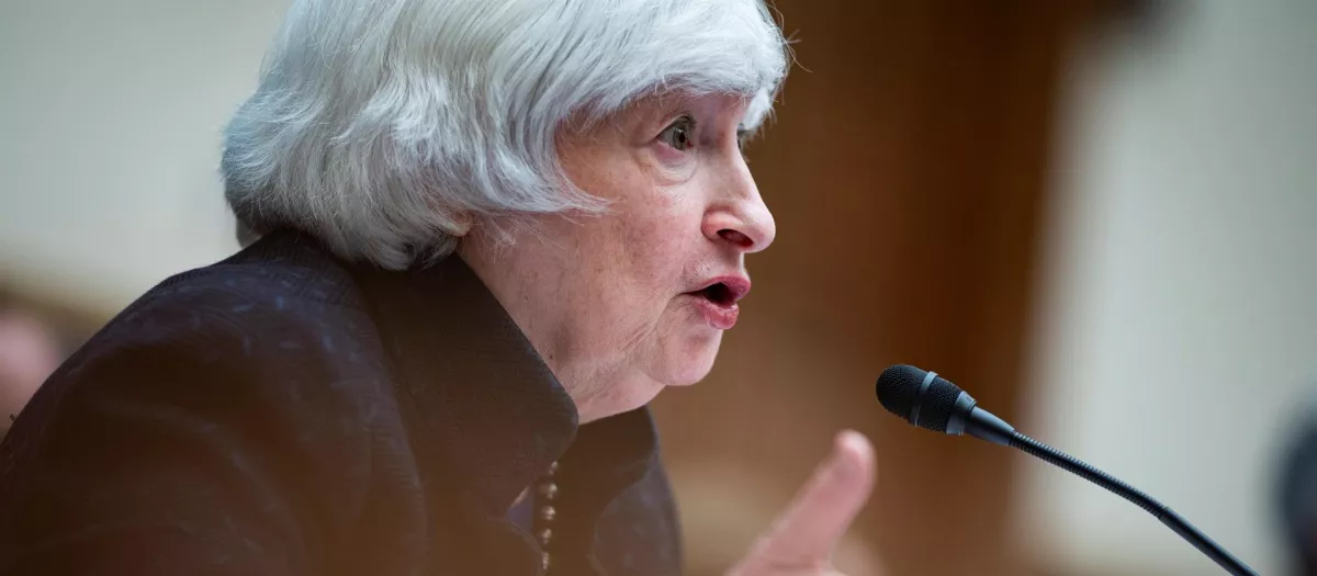 Janet Yellen, secretaria del Tesoro estadounidense, durante una comparecencia
