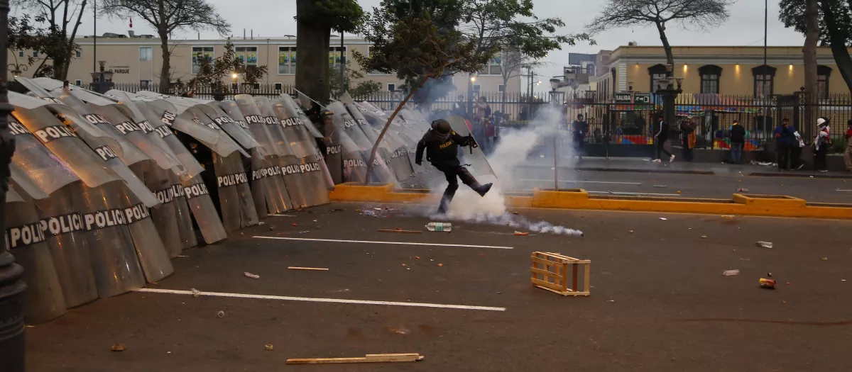 Más tarde, los manifestantes volvieron a congregarse alrededor de las 17:00 (22:00 hora GMT) en la avenida Abancay y en los alrededores de la Plaza San Martín y Dos de Mayo y la jornada acabó con varios lanzamientos de bombas lacrimógenas y perdigones, por parte de la Policía.
