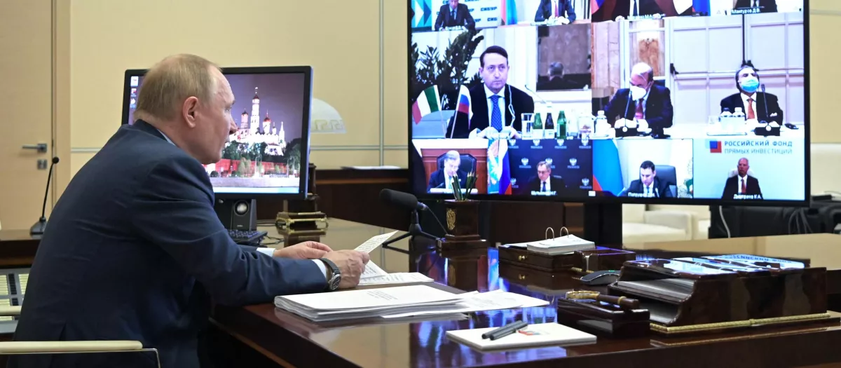 Vladimir Putin durante su reunión con empresarios italianos un mes antes del inicio de la invasión a UcraniaAFP