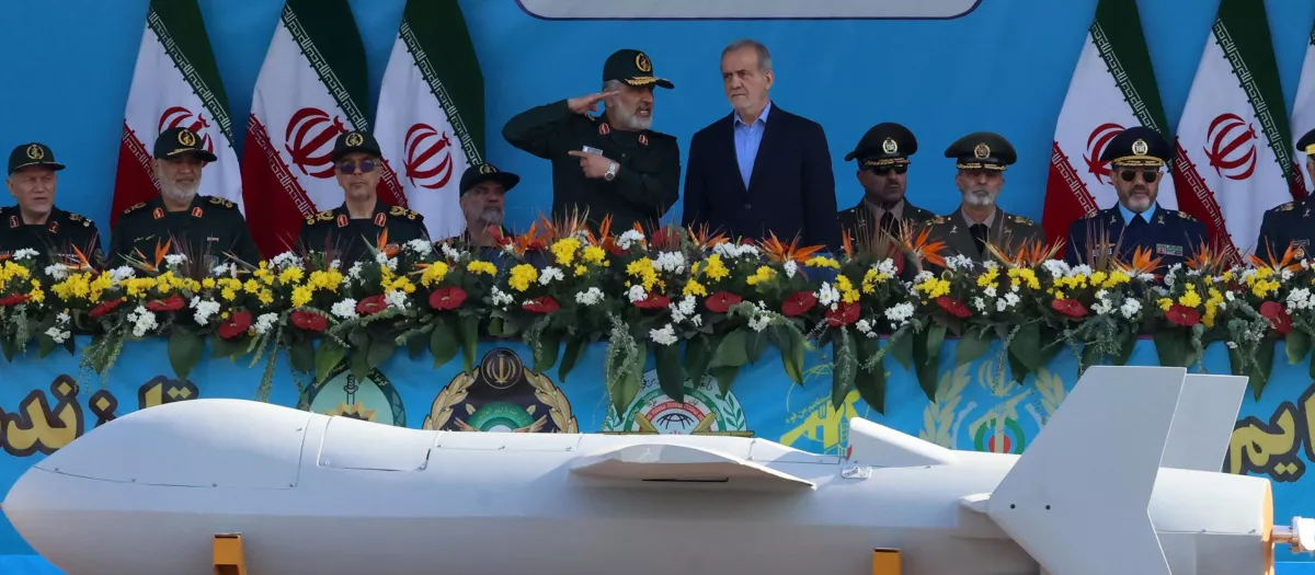 El presidente de Irán, Masoud Pezeshkian, y el comandante de la Fuerza Aeroespacial de la Guardia Revolucionaria