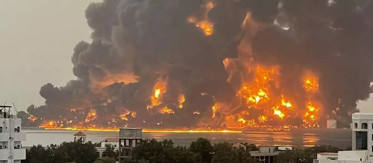 Imagen del puerto de Al Hodeida tras un bombardeoRR SS