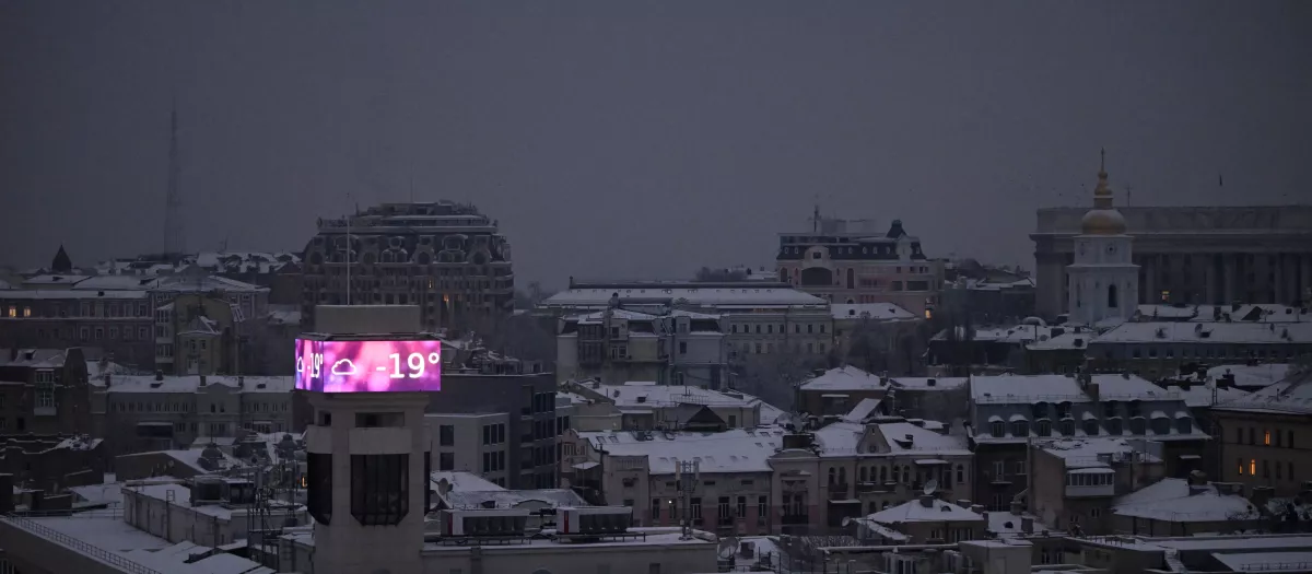 Un edificio que muestra una temperatura de -19 grados Celsius, en KievAFP