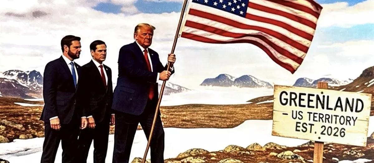 Trump conquista y pone su bandera en Groenlandia escoltado por Vance y Marco Rubio gracias a la IA