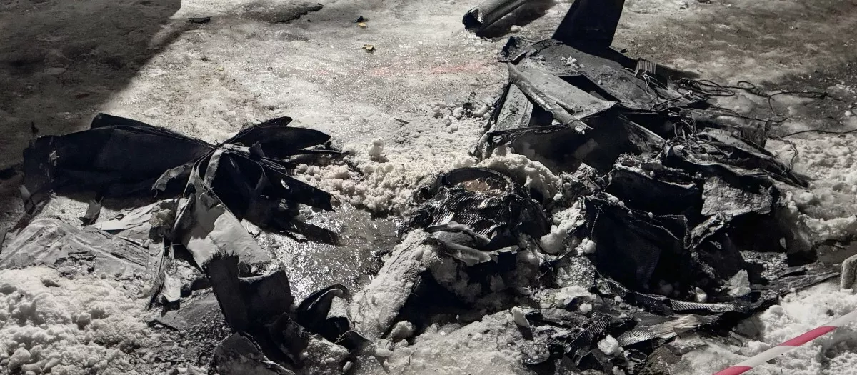 Imagen de los restos de un dron derribado en Ucrania