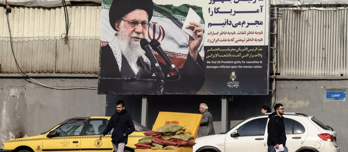 Un cartel en Teherán muestra el líder supremo de Irán Alí Jamenei