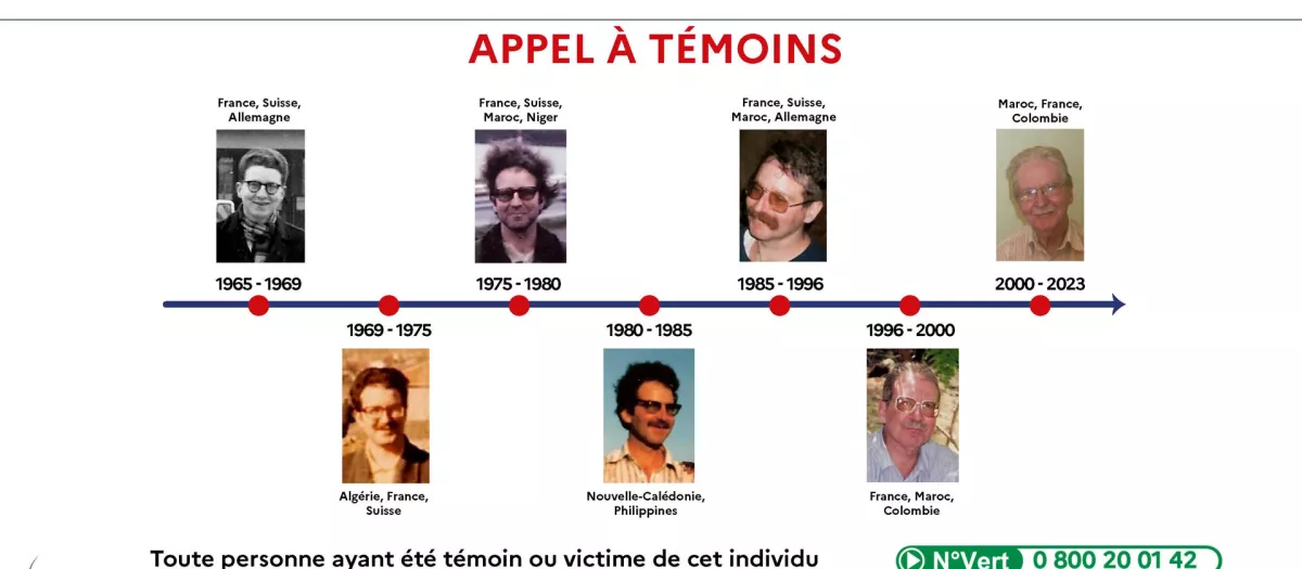 Fotomontaje realizado por la Gendarmería francesa para hacer un llamado a las potenciales víctimas de Jaques Leveugle,