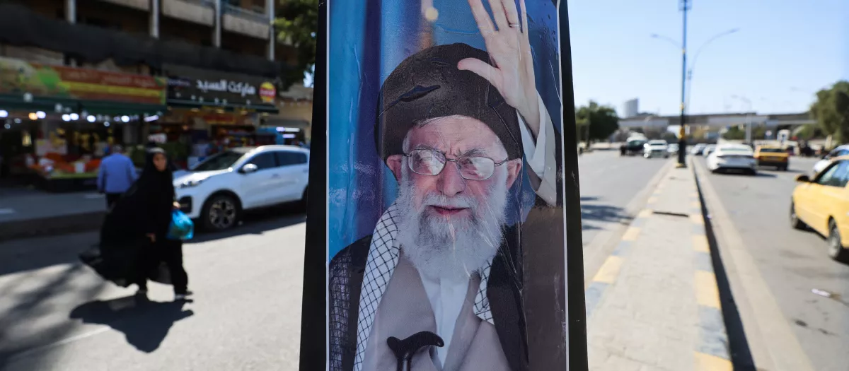 Un cartel con la imagen del ayatolá Alí Jamenéi en Bagdad.