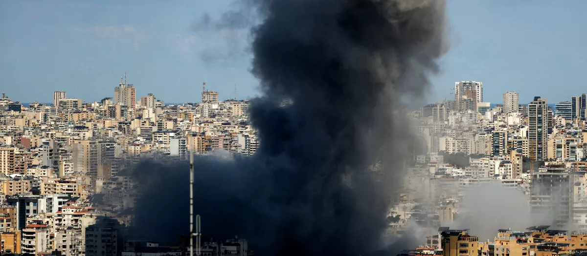 Una columna de humo negro asciende en Beirut