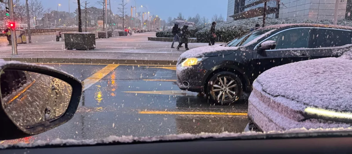 La nevada ha comenzado de madrugada y ha cuajado en las aceras y en algunas calles del norte de la ciudad, afectando también a toda la sierra noroeste y poblaciones de la A-1 y de la A-6