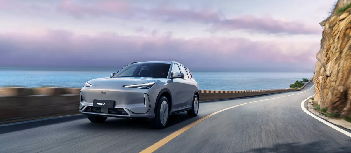El Geely E5 es un SUV eléctrico de tamaño medio que desarrolla una potencia de 160 kW (218 CV) y ofrece una autonomía máxima de hasta 475 kilómetros según el ciclo WLTP. Incorpora la batería Short Blade Battery, desarrollada internamente por la marca y disponible en dos capacidades, 60,22 kWh y 68,79 kWh, diseñada para combinar alta densidad energética, durabilidad y seguridad. Además, su sistema de carga rápida permite recuperar del 30 % al 80 % de la batería en apenas 20 minutos, facilitando su uso diario y reduciendo las emisiones operativas.