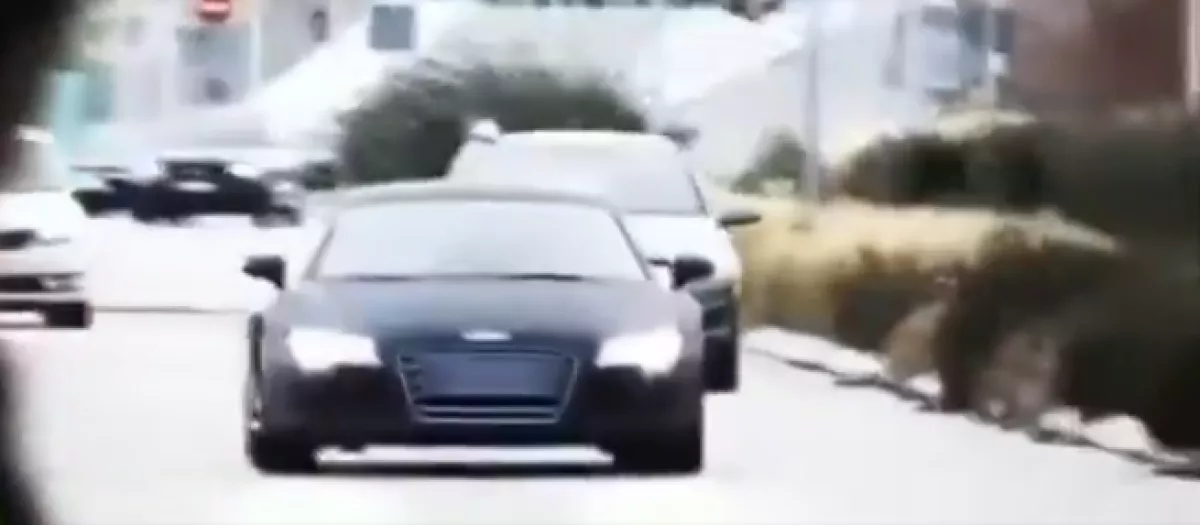 El Audi entra al recinto mientras la seguridad para al coche de la Policía