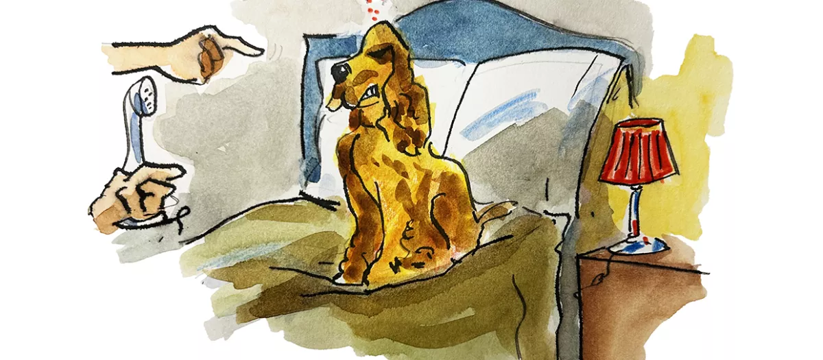 — Tu perro no me deja meterme en la cama. Gruñe y muestra los dientes.