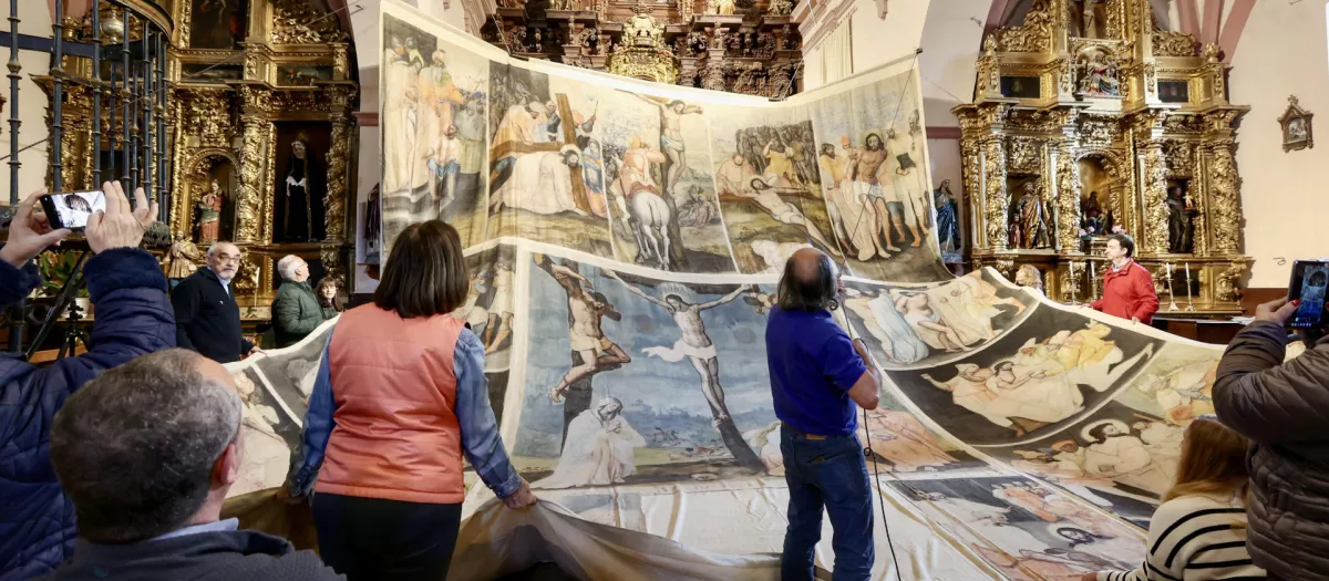 El «velo de la Pasión» más grande y mejor conservado de España vuelve a lucir en su iglesia