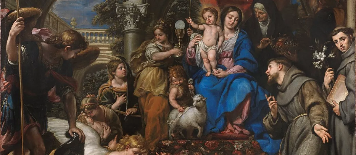 Claudio Coello: “La Virgen con el Niño entre las virtudes teologales y santos”. 1669. Óleo sobre tela