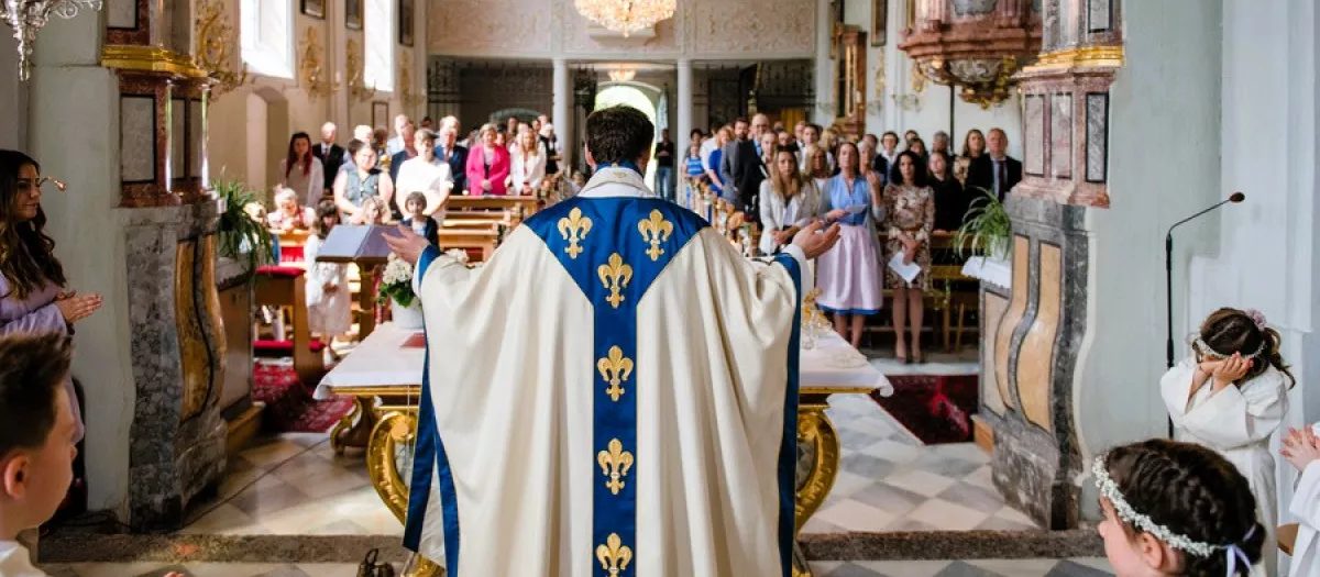 Un sacerdote celebra la misa en una iglesia del Tirol