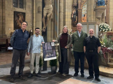 Tyquan Hall, en el centro, con sus padres y la enfermera y el médico que le salvaron la vida nada más nacer, ante el retrato del Cura ValeraDiócesis de Almería