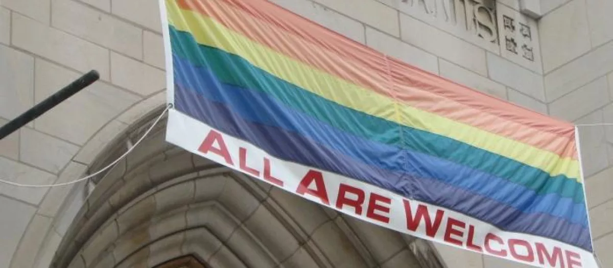 Iglesia con bandera gay