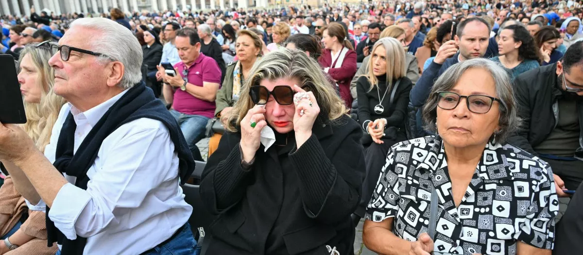 Un grupo de fieles lloran la muerte del Papa Francisco en la Plaza de San Pedro del Vaticano