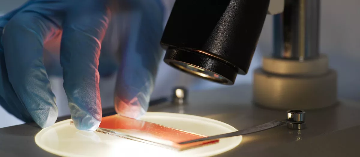 Medical scientist studying blood sample under microscope, biochemical researchGetty Images
