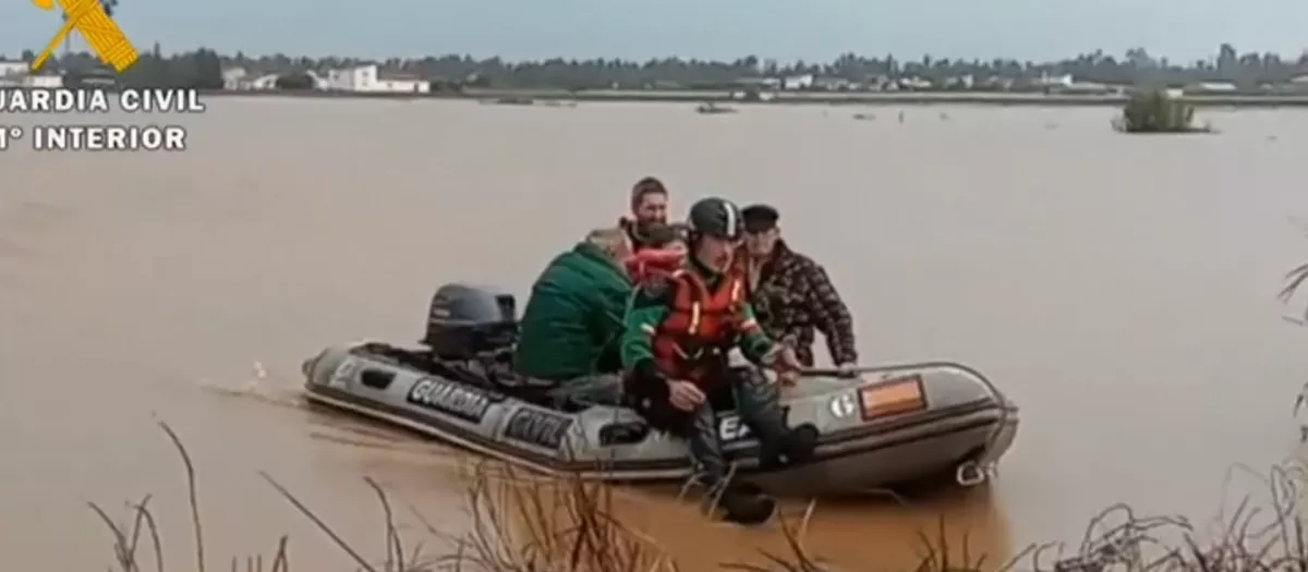 El complicado rescate de la Guardia Civil a un vecino de Montijo (Badajoz) de las riadas de Efrain